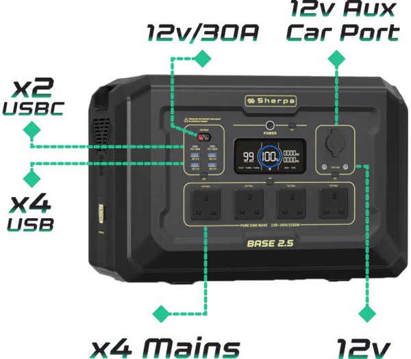 The BASE 2.5 is a portable power station that's user-friendly, versatile, and lightweight, designed to transform power accessibility. It supports substantial solar and hybrid renewable inputs, allowing continuous charging while providing clean and efficient power to your essential devices. Built with scalable capacity, the BASE 2.5 is ideal for both recreational use and home backup. Its simple link-up system lets you add up to 15 extra battery units for extensive energy storage.
